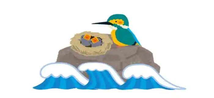 ある時、お産の近いカワセミが岬にやって来て、海に突き出た岩を見つけ、